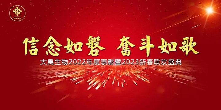 2023年1月18日下午,大禹生物員工及家屬歡聚一堂,載歌載舞,迎接新年的曙光。研發大樓內,大禹生物2022年度表彰暨2023新春聯歡盛典如期召開。