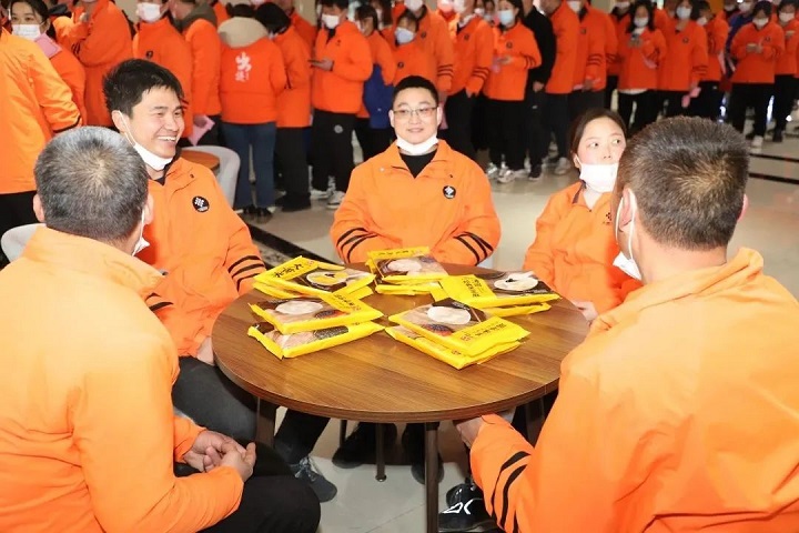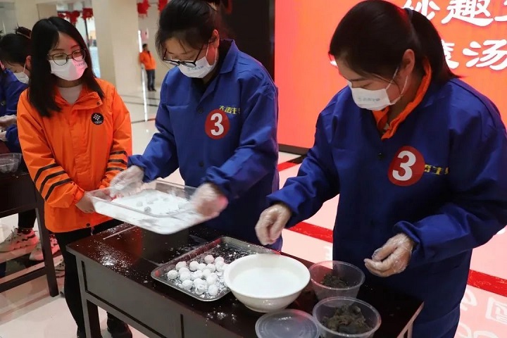 猜完燈謎后,公司為給職工們準備了寓意“團團圓圓”的湯圓,大家圍坐在一起,敞開心扉暢聊。