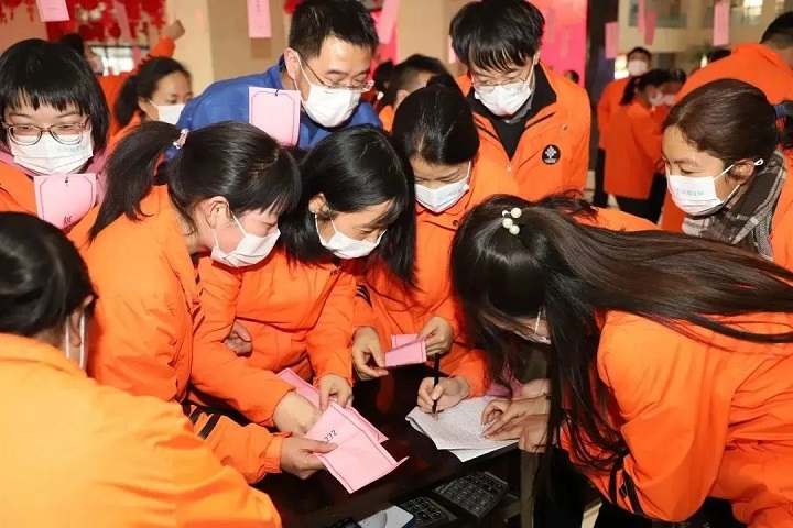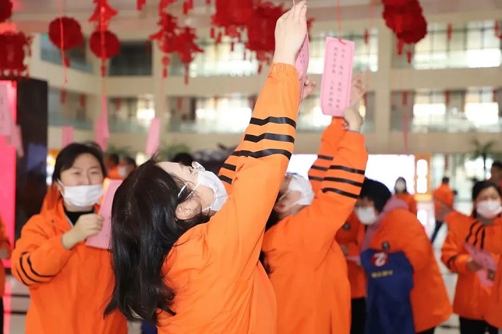 一條條涵蓋歷史、自然、生活等趣味十足的燈謎,引起職工們的極大興趣,紛紛領(lǐng)謎面猜謎底,不時傳來陣陣歡笑聲。