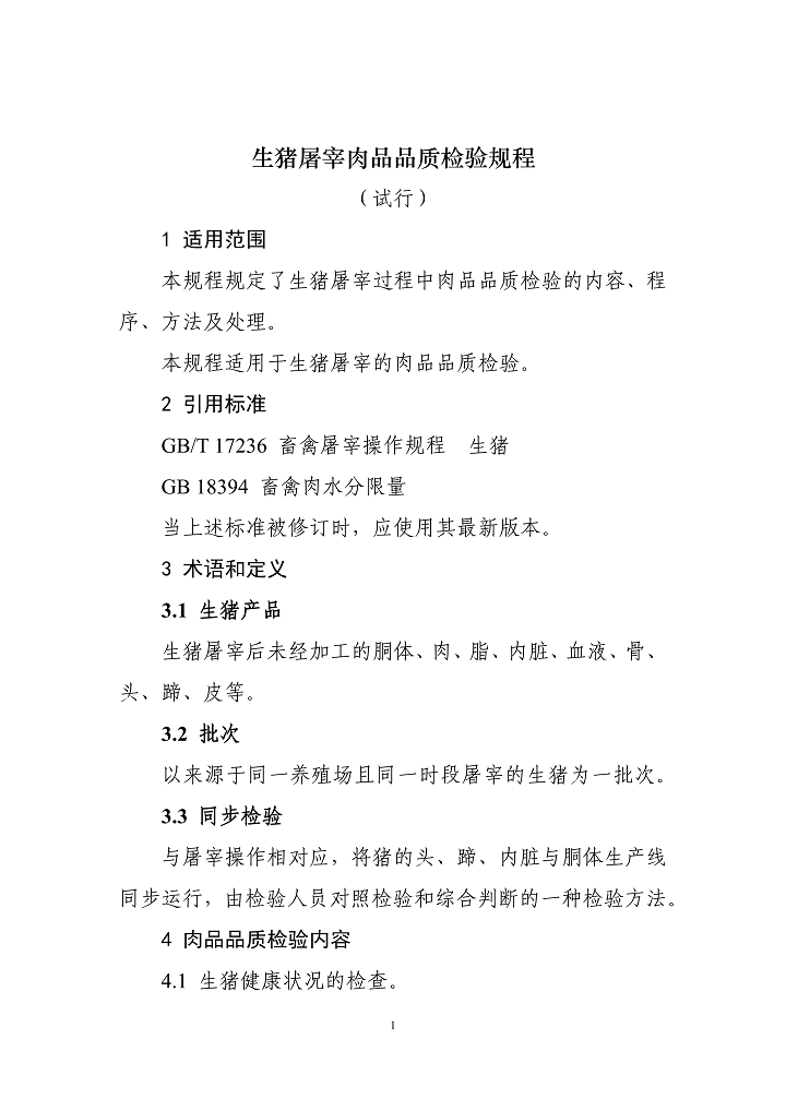 農業農村部公布《生豬屠宰肉品品質檢驗規程(試行)》