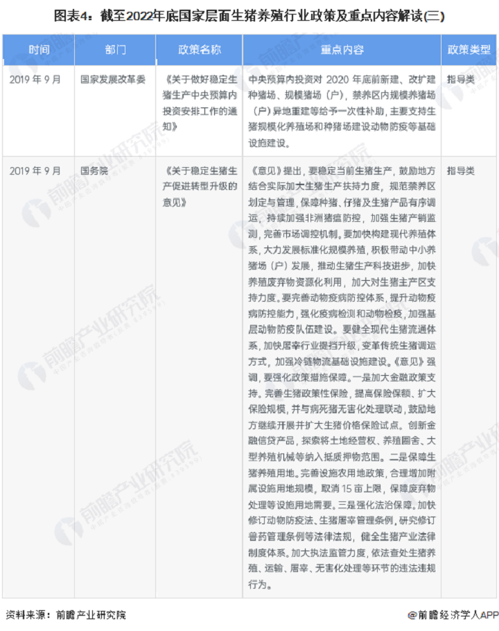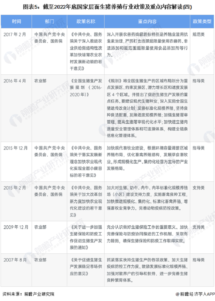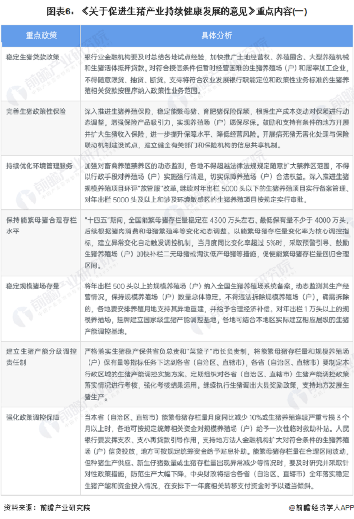 隨著經濟的不斷發展、人們生活水平的日益提高,肉類市場規模及覆蓋消費者群體不斷擴大。國家相繼出臺了多項政策,對生豬養殖行業的健康有序發展起到重要作用。具體政策如下: