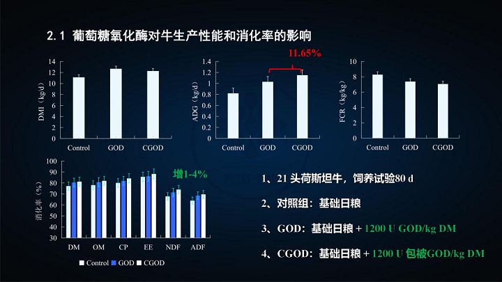 對(duì)干物質(zhì)、有機(jī)物、粗蛋白、粗脂肪、洗滌纖維的消化率均有明顯提升。