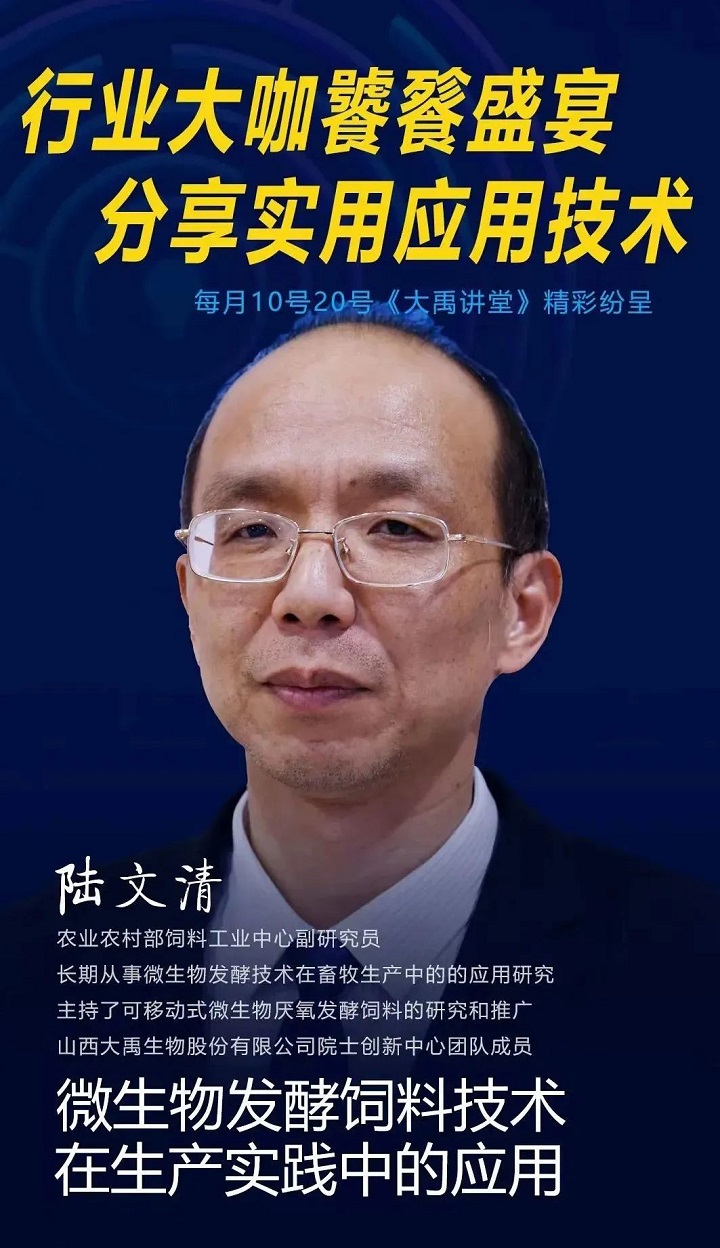 《大禹講堂》是大禹生物技術(shù)團(tuán)隊(duì)內(nèi)部技術(shù)培訓(xùn)、交流平臺(tái),每月的10日、20日進(jìn)行兩期。本期陸文清老師重點(diǎn)講解了發(fā)酵飼料的生產(chǎn)應(yīng)用和糞污處理的發(fā)酵技術(shù)。