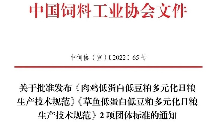 飼料工業協會批準發布《肉雞、草魚低蛋白低豆粕多元化日糧生產技術規范》兩項團體標準